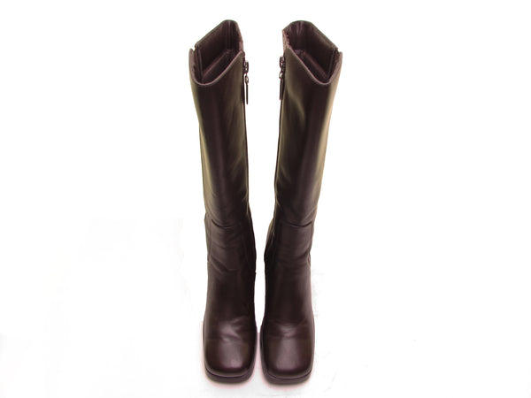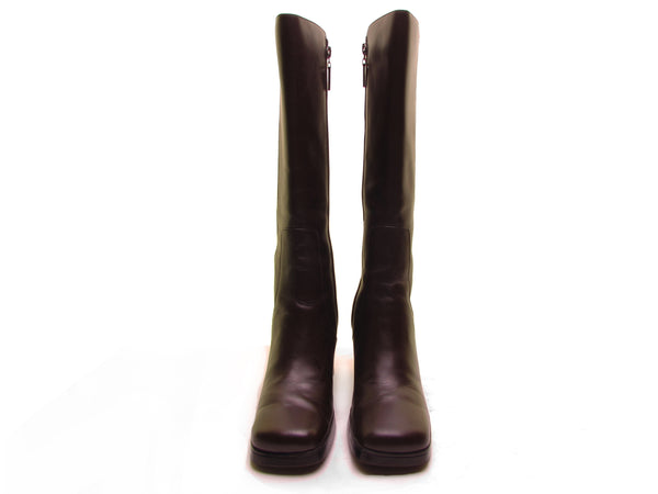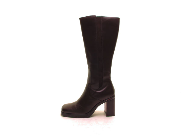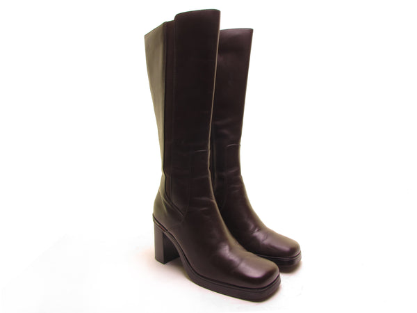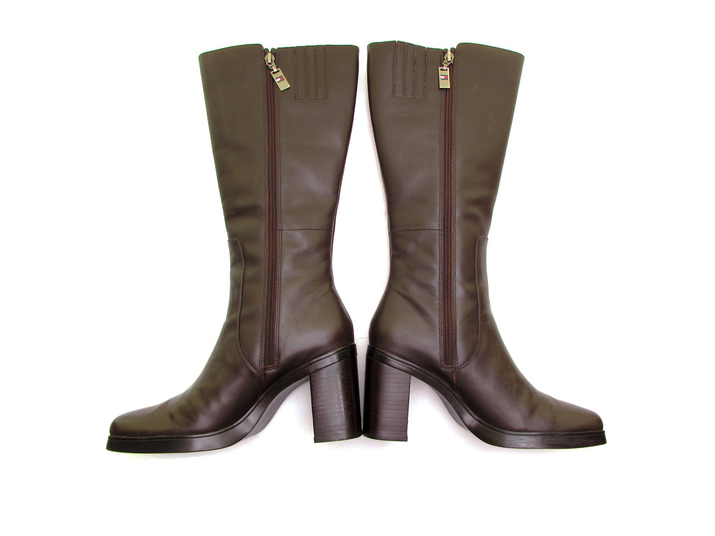 Vintage 90s brown leather tall boots with platform sole by Tommy Hilfiger. size 10