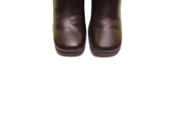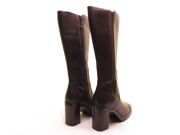 90s TOMMY HILFIGER boots platform boots square toe boots chunky heel boots brown leather knee high boots tall indie hipster boots NOS Size 10