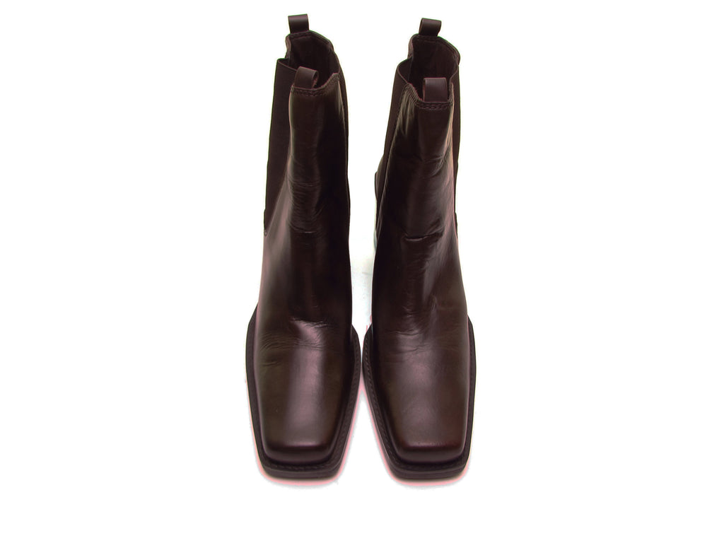 Vintage dark chocolate brown leather Chelsea Beatle boots with square toe and super chunky heel. size 10 US