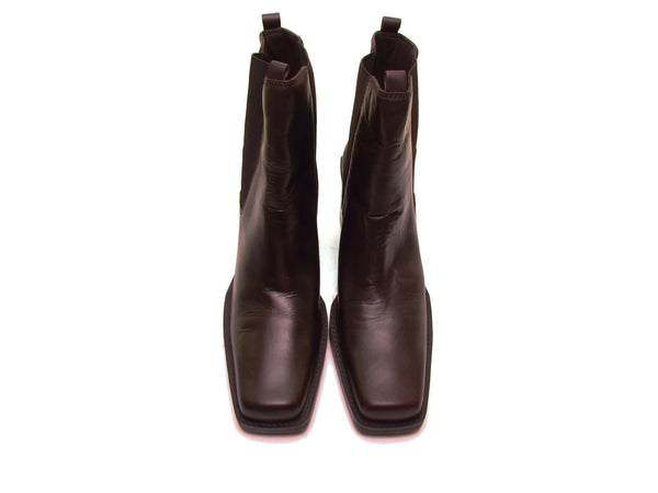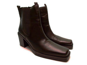 Chelsea square toe boots Chunky Heel Boots 90s vintage boots brown leather ankle boot 90s booties block heel high heel stacked heel Size 10